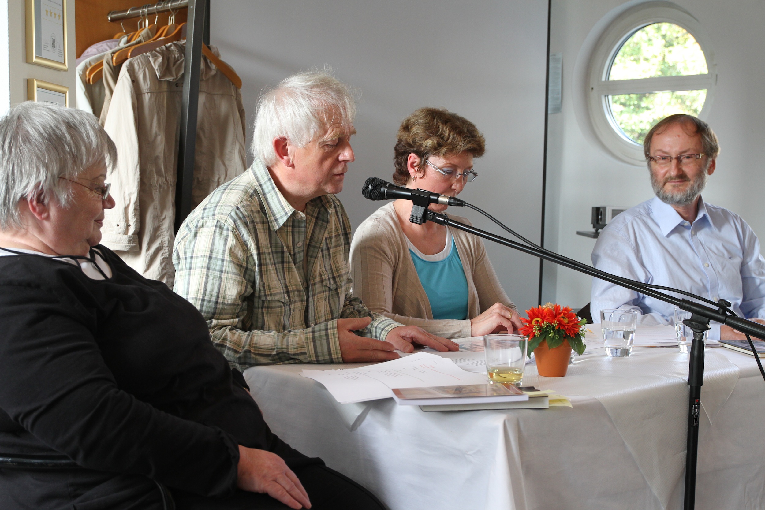 „Begegnungen“ hieß das literarisch-musikalische Programm des Südthüringer Literaturvereins im Rahmen des Provinzschreis, der am Samstag (20.10.2012) im Suhler Hotel Thüringen zu hören war. Mit von der Partie waren diesmal Ulrike Blechschmidt aus Zella-Mehlis, Ursula Schütt aus Suhl-Dietzhausen, Harald Lindig aus dem Goethe-Ort Manebach und Vereinsvorsitzender Holger Uske aus Suhl. Am Akkordeon spielte: Predrac Tomic aus Weimar.