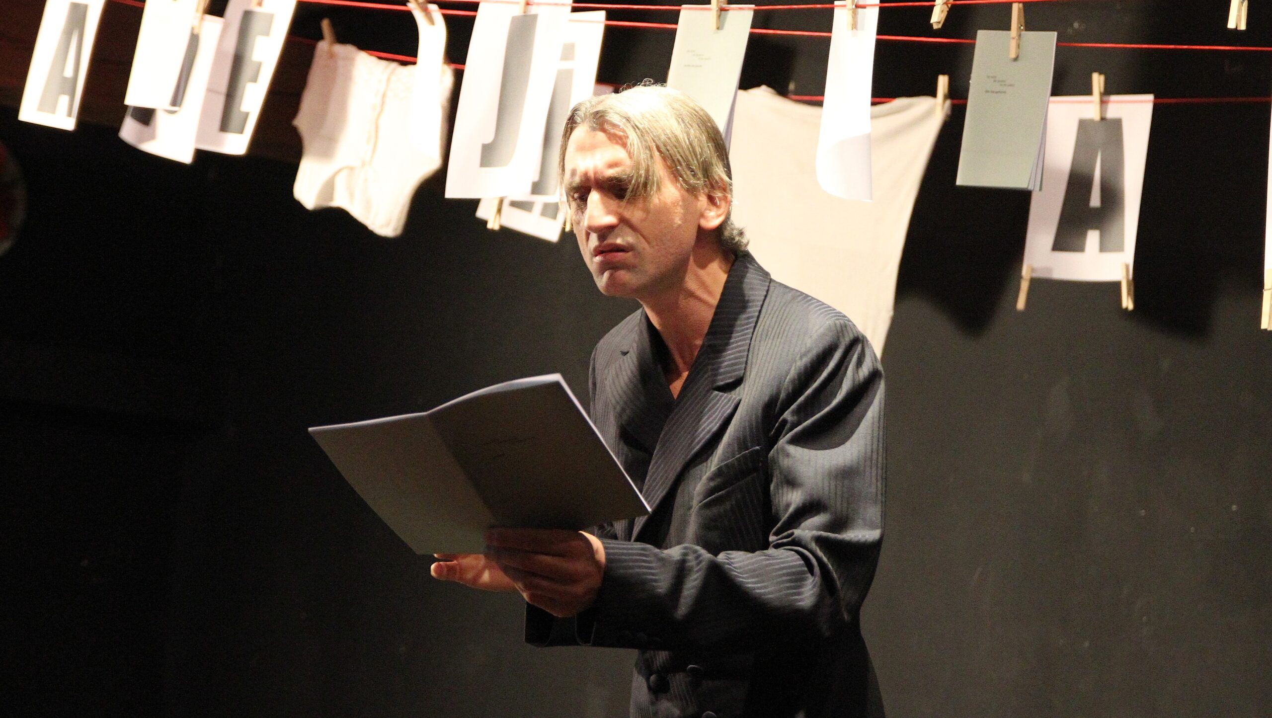 Die Ernst Jandl Matinee am heutigen Samstagmittag mit Schauspieler, Sänger, Entertainer, Conférencier und DADAMANNOMANN Michael Gerlinger im Kunsthaus Meiningen, stürzte sich in die Tiefen der Jandlgedankelwelten. schtznnngrrrrrrrmmmmmm ….boooooooooooooooooooooooorrrrrannnssemirr sauuuuuuuguuuuuuuuuut. Es kam wie es kommen musste, so sehr, dass er auch noch über sich hinaus kam. Gerlingers grenzenloser Wahn mit Sinn, an einem strahlend schönen Herbsttag im Meininger Werratal. Ohne Kompromisse, aber mit leckeren DA DA Brezelbuchstaben mit Dip.